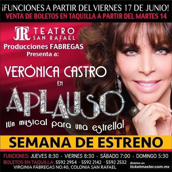 Come enjoy this adaptation of the Broadway classic: Applause! Starring Verónica Castro.